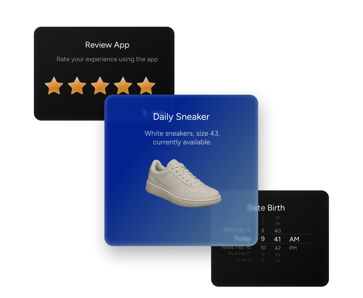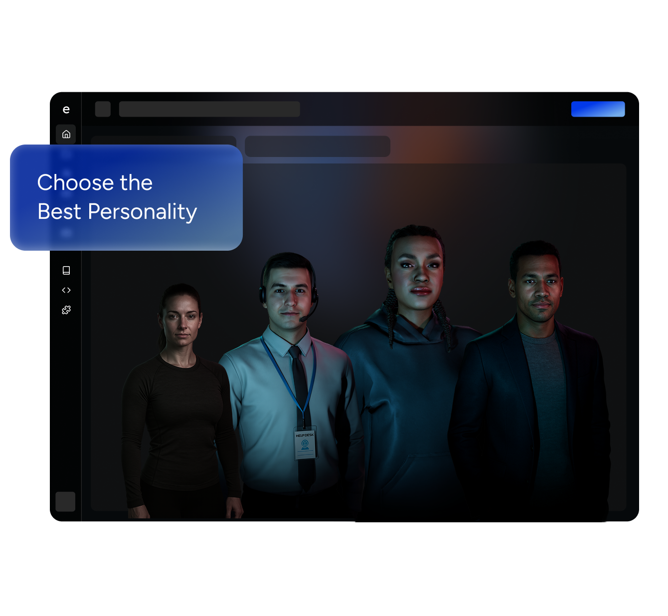 Agents have a voice and visual presence that appeals to users. Extends to banners, popups, and modals.